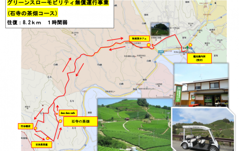 9~11月、秋の深まる土日祝、グリーンスローモビリティ(電動小型低速車)で茶畑巡りのご案内(無料)!