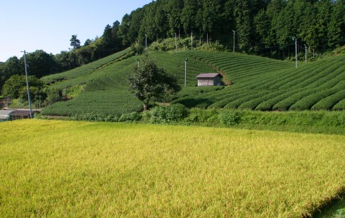 白栖地区の茶畑は道沿いに、花や稲とともに季節折々の風景を見せてくれ、ハイキングコースにぴったりです。