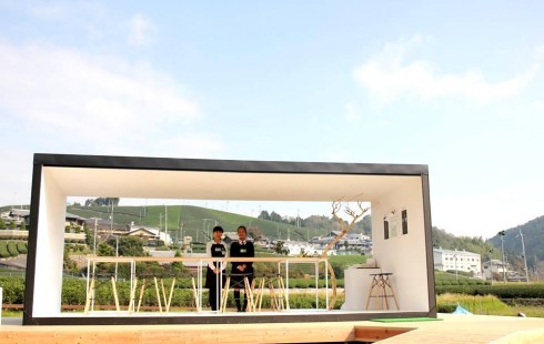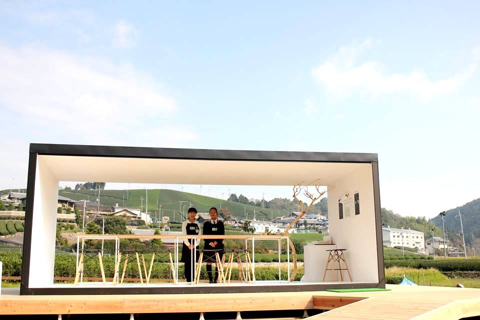 茶畑景観をキャンパスに見立て、その中に咲く一輪の花(=アート作品)をご鑑賞ください