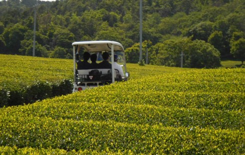 運転手付きカートに乗って、和束茶カフェを発着地点に白栖、石寺を周遊します