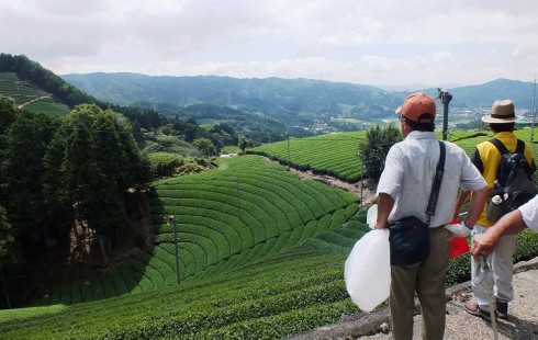 「原山・円形茶園」の景観と、冷気がいっぱいの「五光の滝」を訪ねます。