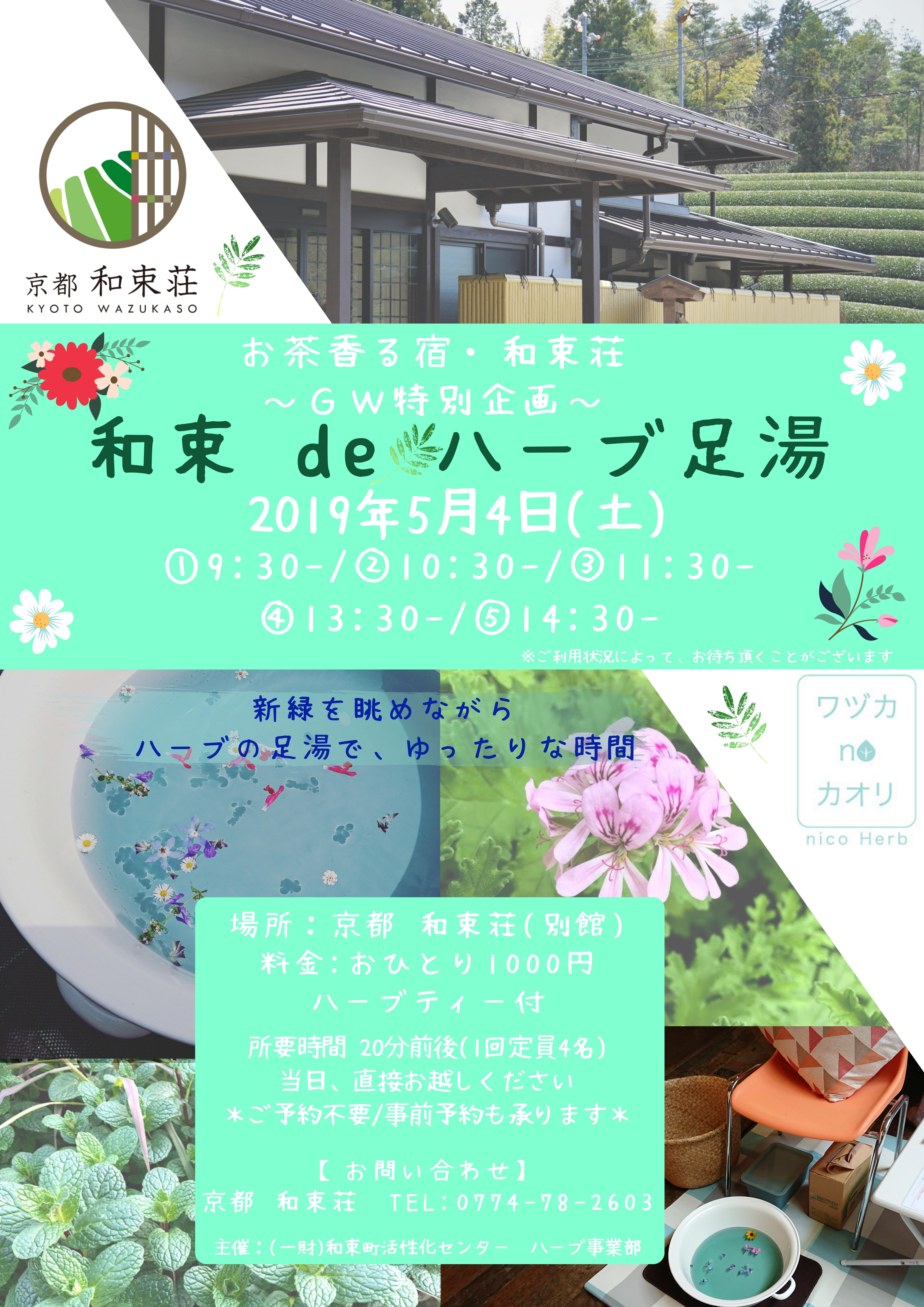 お茶香る宿・和束荘で、ハーブの足湯イベントを開催します!