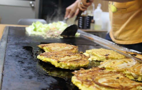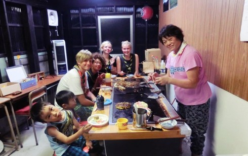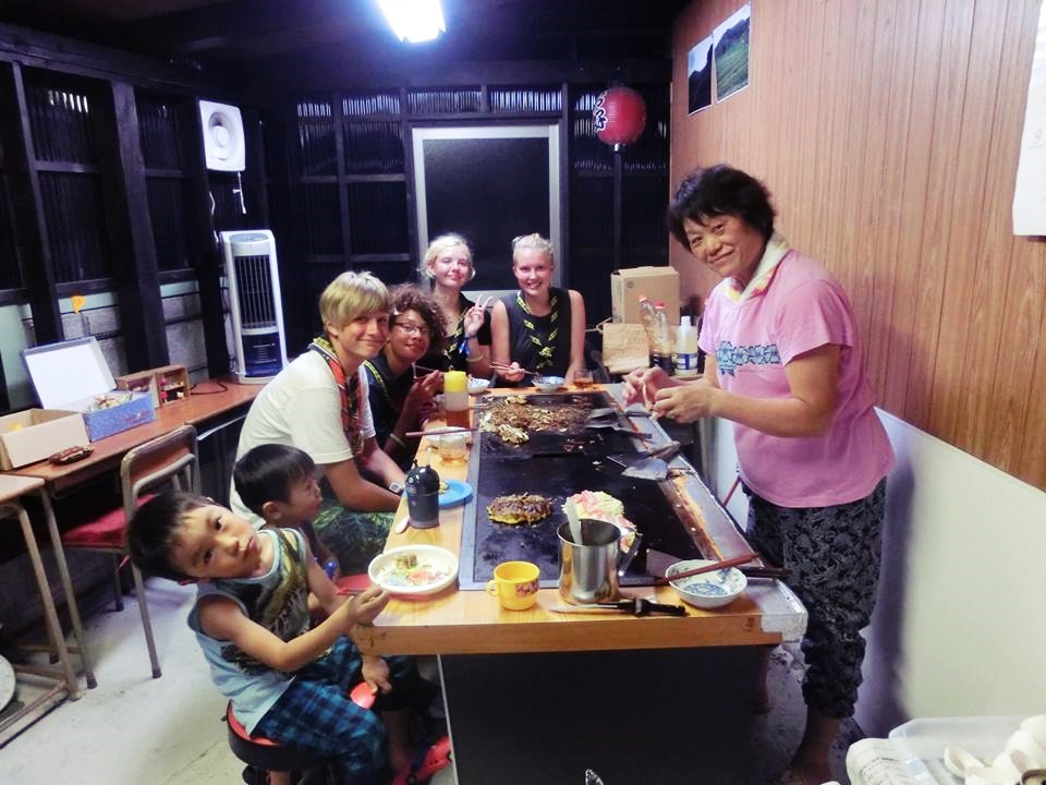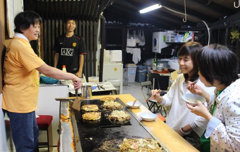 晩ごはんには和美さん特製のお好み焼き、そして西山さん自家製の美味しいお茶が堪能できます。