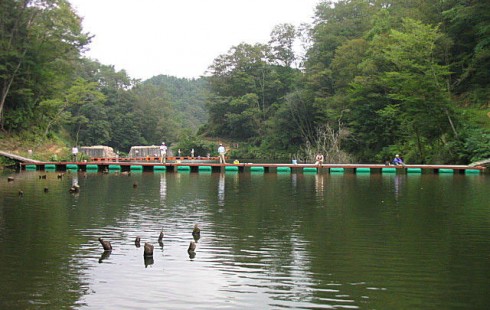 和束町の北東に位置する、なごみの湖(湯船森林公園フッシングエリア)は、三ヶ岳を源として和束川に合流する支流”黒川”を2箇所の堰堤で堰き止めた人造湖です。周囲は広葉樹に囲まれ、四季の移り変わりにより素晴らしい情景を見せてくれます。