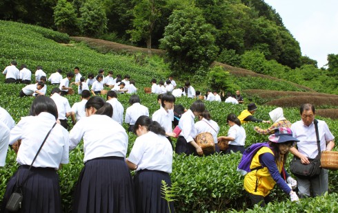 2016年6月8日、埼玉から130人の中学生が修学旅行のプログラムのひとつとして、和束町を訪問。とても時間がない中でしたが、二手に分かれ、お茶摘み体験と、抹茶アート体験を楽しまれました。