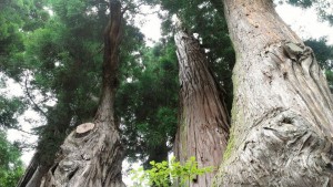 樹齢1300年以上と言われる杉の大木で、幹周り12.8メートル、高さ31メートルあり、その昔、本幹が倒壊してその枝木の8本が株を一つに巨木となったようで、再三の落雷に逢いながら、今も勇壮といきづいています。 この杉の木は…