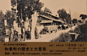 和束町史編さん室の事業として、下記の通り、第二回目の歴史講演会を開催します。 町史編集委員で京都府立大学の藤本仁文氏より、これまでにわかった和束の歴史、和束と大嘗祭との関わりについてお話していただきます。多数の皆さんのお…