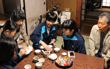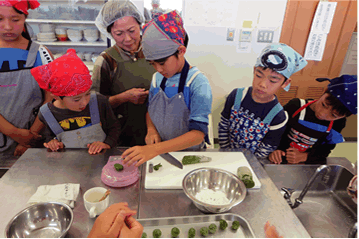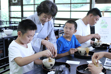 山の頂まで広がる茶畑、四季折々の景色のなかで豊かに暮らす、和束町の人たち。生活体験では、子どもたちを家族の一員として迎えお茶の郷の仕事から、暮らしのすべてを共にします。夕食や朝食を一緒に作り、調理技術や食文化を伝えます。お茶の美味しい淹れ方を教えるなどお茶の奥深さを伝えます。台所の片づけ、風呂、布団の準備片付けも家族同様行っていただきます。
